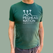 Your Peghead Nation t-shirt is a soft, forest green shirt designed for a modern, comfortable fit. Available in M, L, and XL sizes. Lightweight, 4.3 oz. 100% cotton, made by Next Level Apparel.